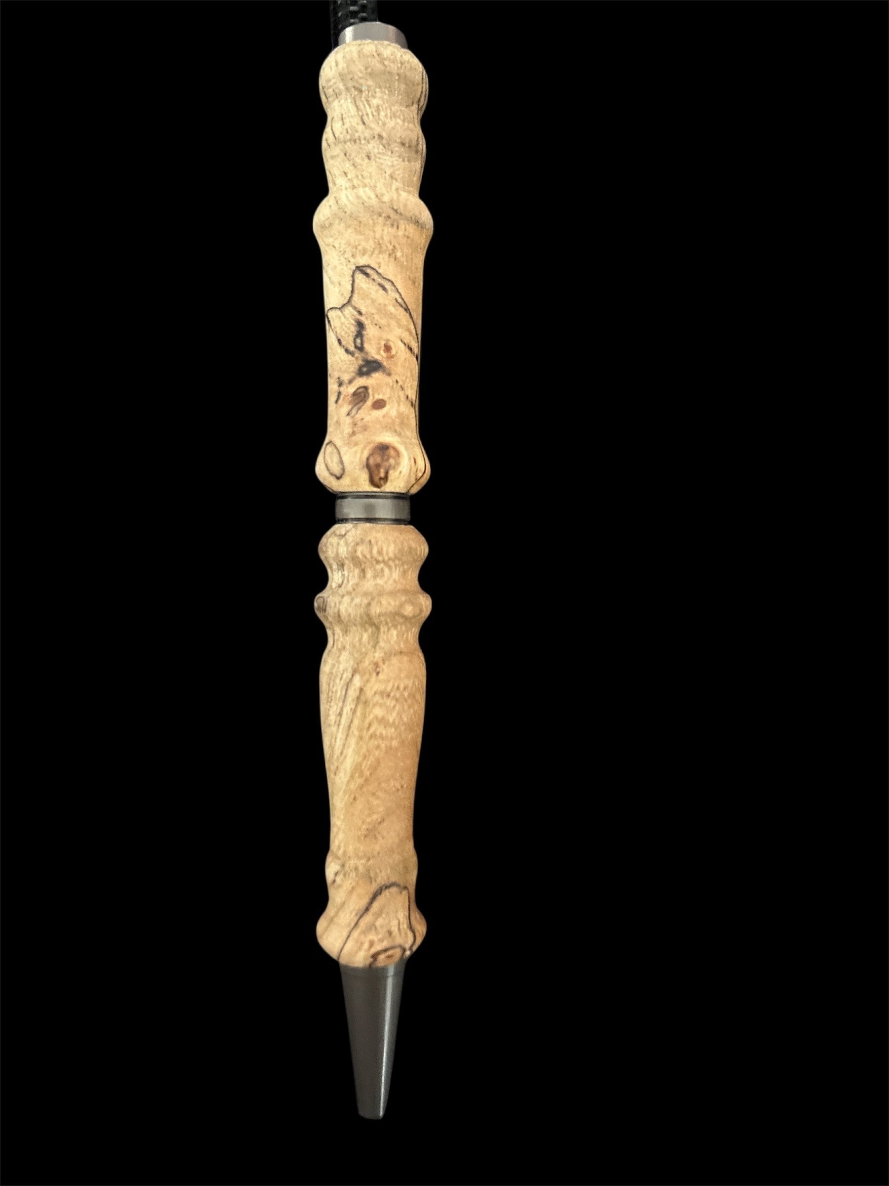 The Freddy is a pen that was hand-turned. The wood was all sustainably sourced from fallen timbers. Accepts Cross pen ink refills, which are widely available. Made of spalted elm. Spalting occurs when a dead (usual fallen) log starts to decompose. The black lines are made by a fungus that follows the tree's vascular system.
